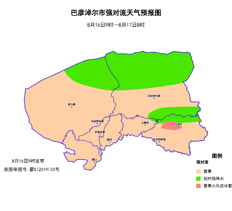 巴彦淖尔市气象台8月16日9时发布强对流黄色预警: