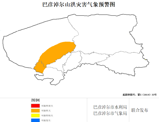 巴彦淖尔市水利局和巴彦淖尔市气象局2025年8月18日18时20分联合发布山洪灾害橙色预警:目前,影响磴口县北部、乌拉特后旗南部沿山的强降水云系发展较强且维持时间长,预计未来3小时磴口县北部、乌拉特后旗南部沿山一带发生山洪灾害的可能性大,请相关部门及时采取防御措施,当地居民注意防范。