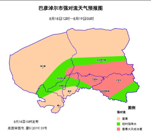 巴彦淖尔市气象台8月18日10时发布强对流黄色预警: