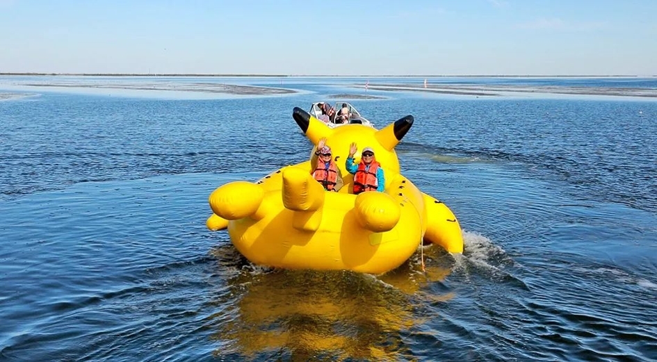 没有机动船的轰鸣,一家人手划木桨协作前进,湖面的风带着水草气息扑面而来。孩子们在家长的指引下观察各种水鸟,辨认水生植物,原本课本上的知识变成了触手可及的实景。“还在上学的时候就约好了,放假一起出来玩,就带着孩子一起来了。乌梁素海景色非常不错,游玩项目也刺激,最喜欢的就是摩托艇、皮卡丘,非常好玩,尤其是那种快要飞起来的感觉。”临河游客祁浩彰说。