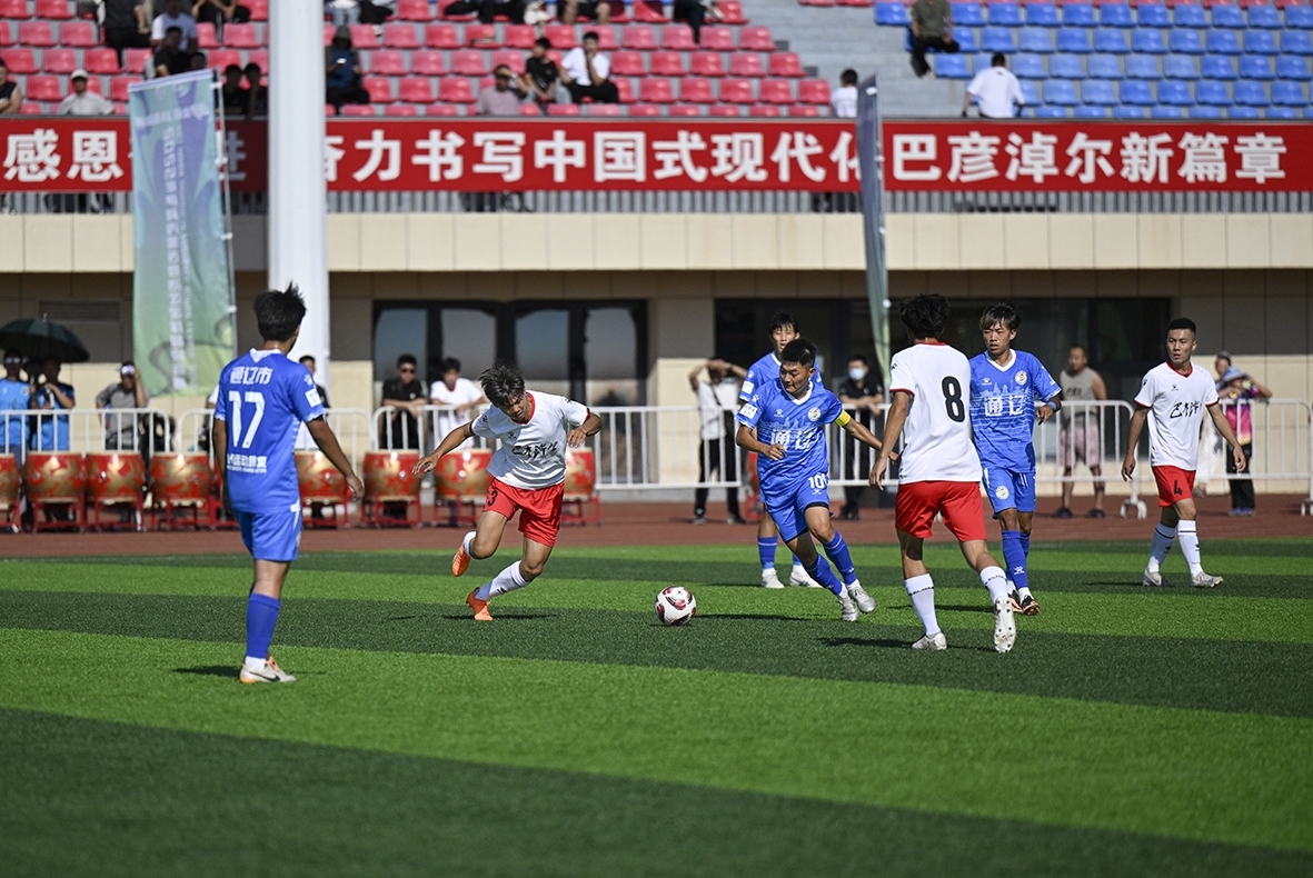 8月23日,“逐梦北疆·绿茵驰骋”2025年内蒙古自治区足球超级联赛巴彦淖尔队对阵通辽队的比赛,在市足球主题公园精彩上演。