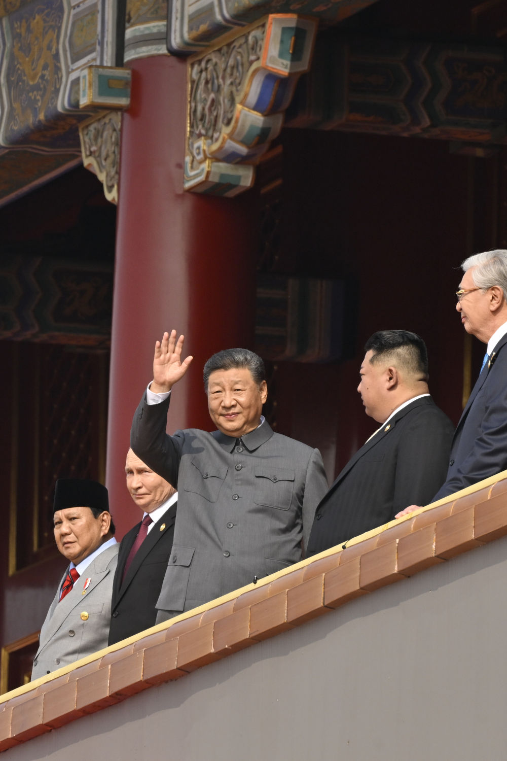 9月3日,纪念中国人民抗日战争暨世界反法西斯战争胜利80周年大会在北京天安门广场隆重举行。这是中共中央总书记、国家主席、中央军委主席习近平等在天安门城楼上。新华社记者 饶爱民 摄
