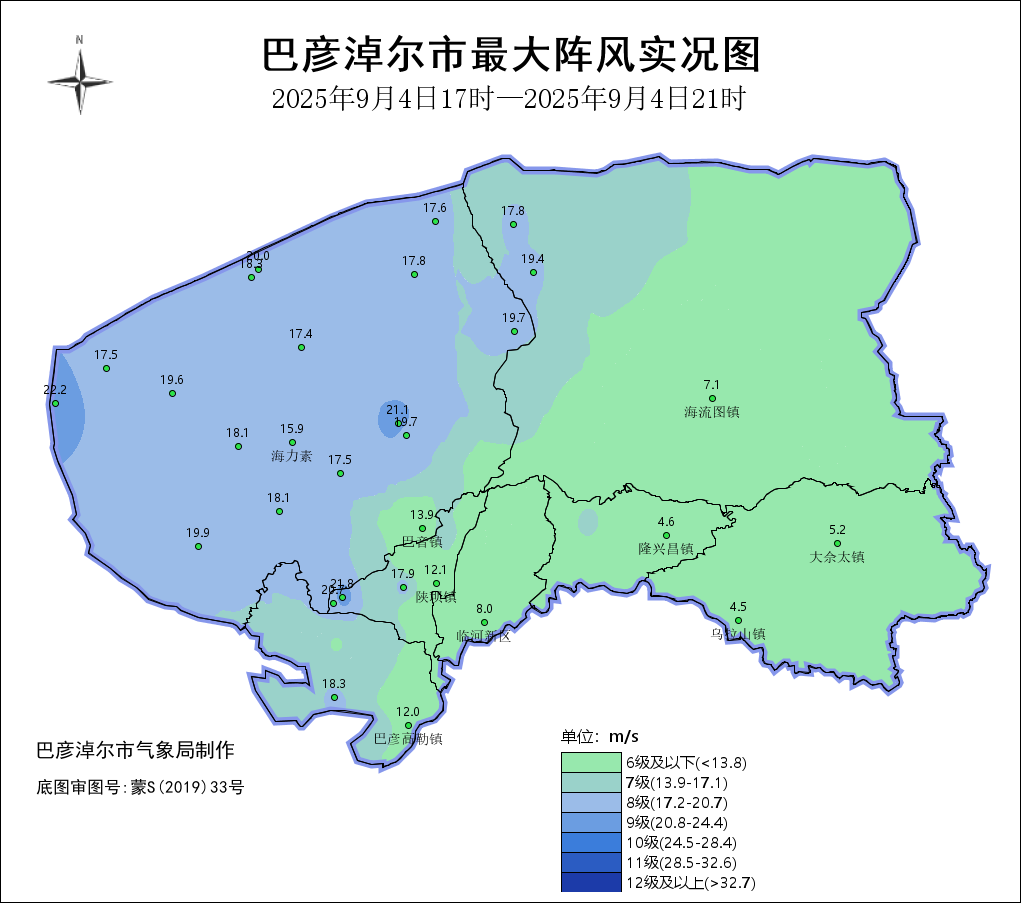 巴市气象台9月4日21时发布降水、大风沙尘天气实况通报: