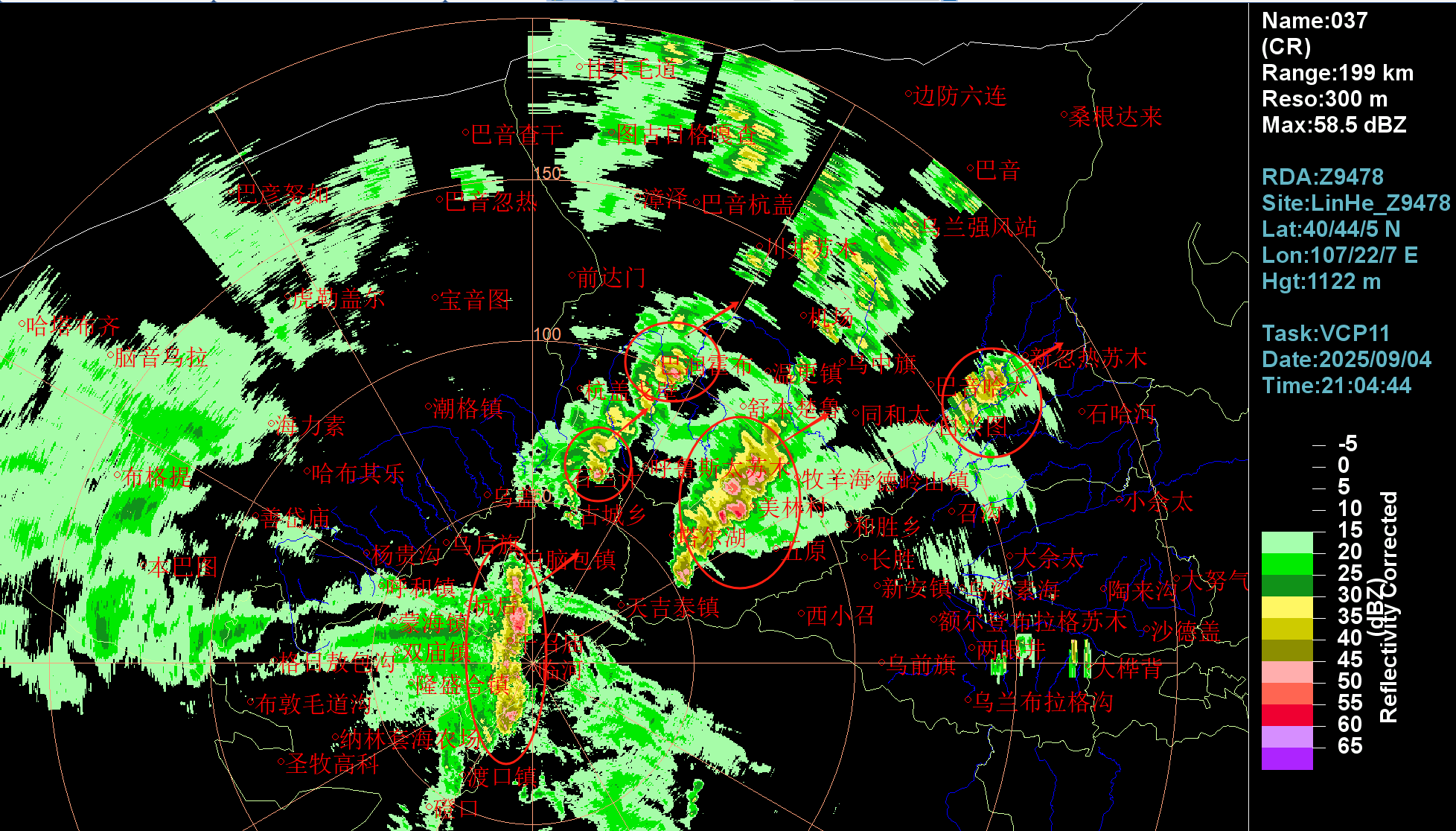 降水:4日16时至21时,乌拉特后旗、乌拉特中旗、磴口县北部和东南部、杭锦后旗北部、临河区南部、五原县西部出现分散阵雨,局地伴有短时强降水,最大降水量出现在五原县塔尔湖36.5毫米(最大小时雨强36.5毫米,出现在20时至21时)。旗县(区)政府所在地无降水。