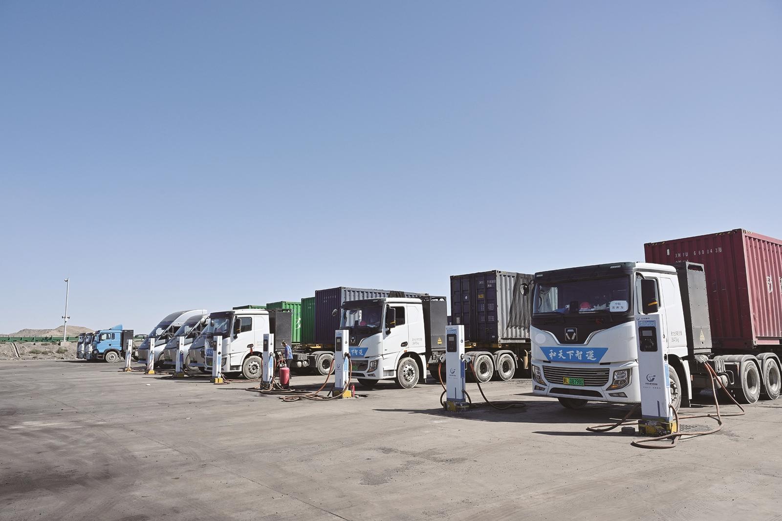 在甘其毛都口岸出境车辆服务区,多辆新能源重卡正在充电。这些一汽解放J6P重载充电式牵引车,单辆可以承载约130吨进口煤炭,能耗仅为传统燃油车的三分之一。“新能源重卡的投用,加上配套设施的完善,让公司的能耗成本降低三分之二。”内蒙古铖成能源发展有限公司总经理费小保说。这一绿色转型的背后,是产业链协同与基础设施建设的精准发力。今年1月,市交投产业运营有限公司建设的国际陆港区重卡充电站投用,34个充电桩(枪)搭配43辆新能源汽车投入跨境煤炭短驳运输后,单日运输量超2500吨。“我们还联动乌拉特海关为新能源车辆开辟‘绿色通道’,通过‘智能卡口’实现自动放行,使通关效率提升30%。”市交投产业运营有限公司党支部书记杜磊介绍。