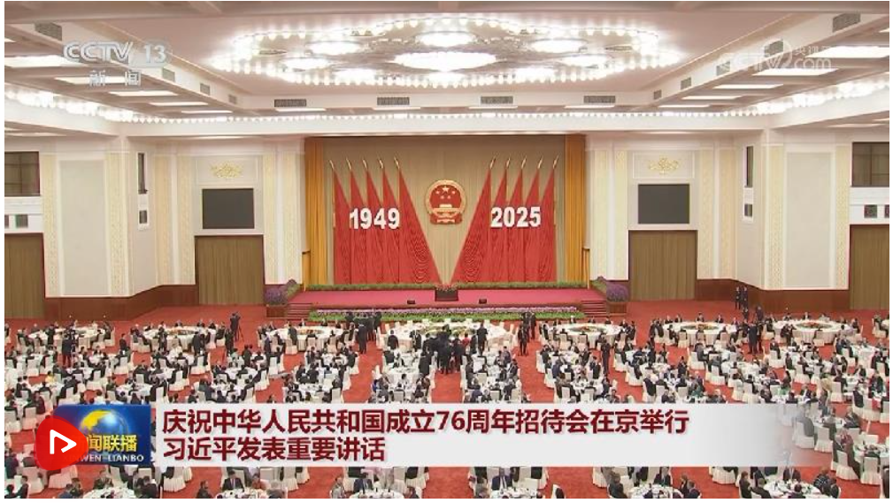 庆祝中华人民共和国成立76周年招待会30日晚在人民大会堂举行。中共中央总书记、国家主席、中央军委主席习近平出席招待会并发表重要讲话。他强调,实现中华民族伟大复兴是前无古人的伟大事业。憧憬和挑战,都激发我们只争朝夕、永不懈怠的奋斗精神。我们要更加紧密地团结在党中央周围,锐意进取、埋头苦干,奋力谱写中国式现代化更加绚丽的篇章。