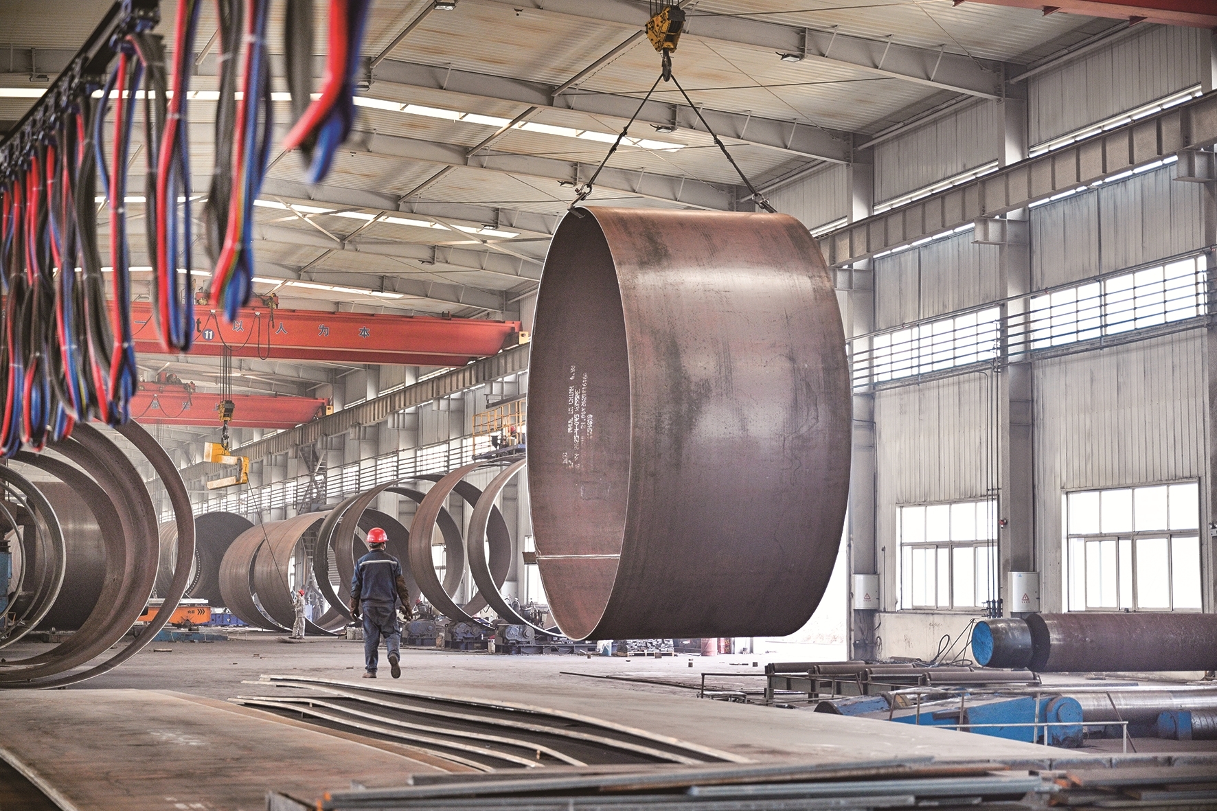 新能源装备制造领域项目稳步推进。在内蒙古锦峰重工科技有限公司生产车间内,风电塔筒生产线繁忙有序。该公司年产12万吨塔筒,一期建设项目总投资2亿元,1.6万平方米厂房内已建成6条生产线,具备年生产400套10兆瓦风电塔筒能力,将有效吸引风电行业上下游配套企业聚集,加速推动本地工业结构绿色化、智能化转型。