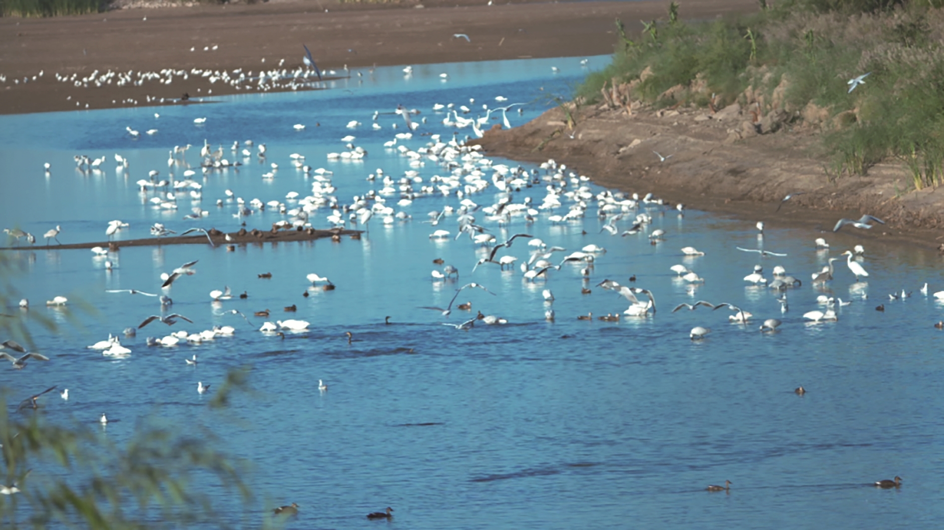 近日,成群的白鹭、白琵鹭、野鸭、鸬鹚等水鸟陆续抵达磴口县境内的湖泊湿地,为当地的秋季增添了无限生机。在波光粼粼的水面上 ,这些远道而来的“客人”或悠然嬉戏、或翩跹起舞、或低头觅食,构成了一幅和谐美丽的生态画卷。