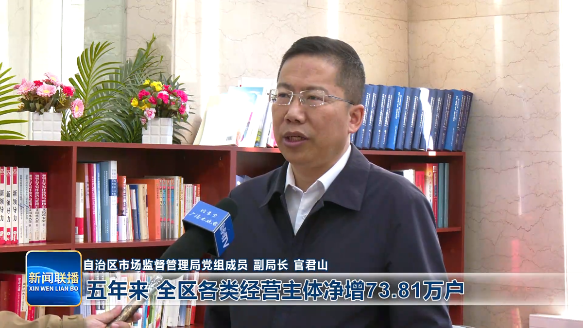 自治区市场监督管理局党组成员 副局长 官君山 五年来,全区各类经营主体净增73.81万户,总量历史性地突破300万户,企业活跃度提升至81%,经营主体量质双升的发展格局基本形成。