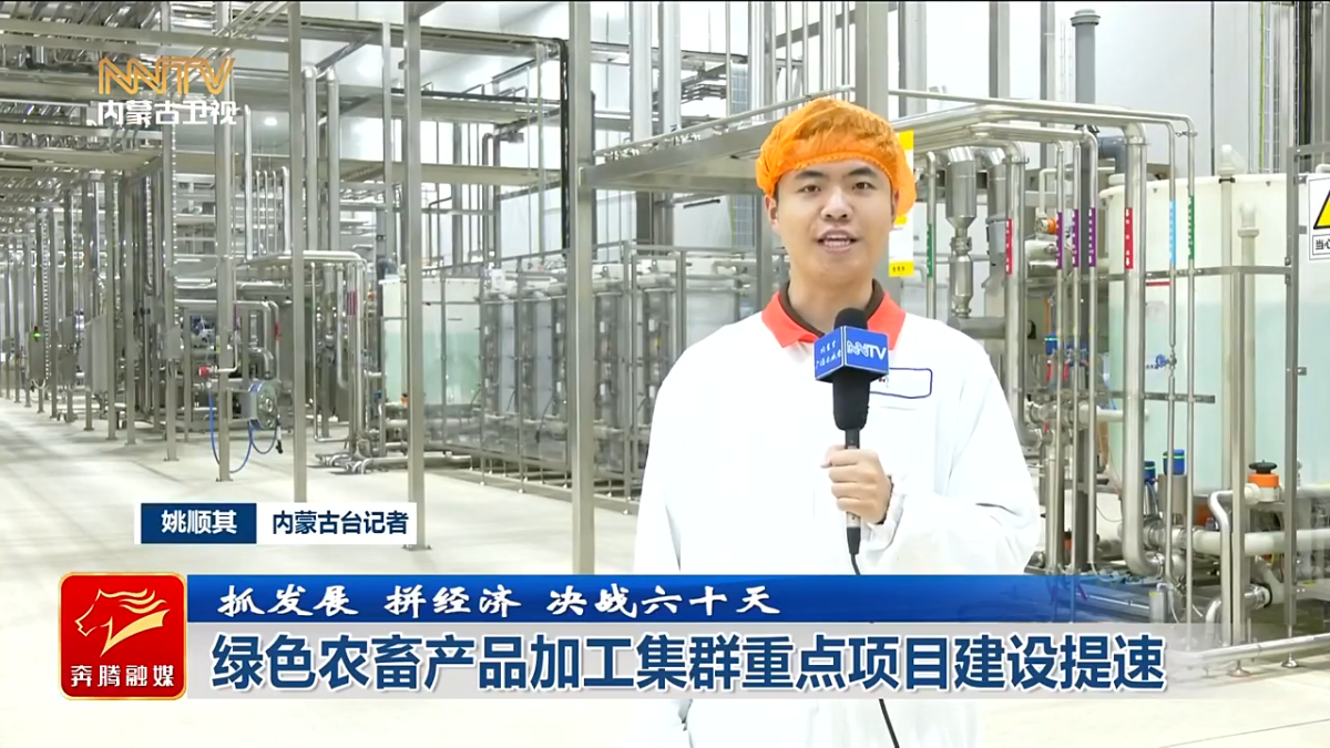 内蒙古台记者 姚顺其 我现在就是在呼和浩特市伊利健康谷奶粉三期智能制造车间。在我的身后,这条产线它的总面积有4300平方米。那么整座车间就是伊利新引入的全电渗析脱盐乳清产线。它的作用就是将奶酪生产过程中的副产品浓缩乳清液进行处理,制成生产婴幼儿配方奶粉的重要原料脱盐乳清粉。
