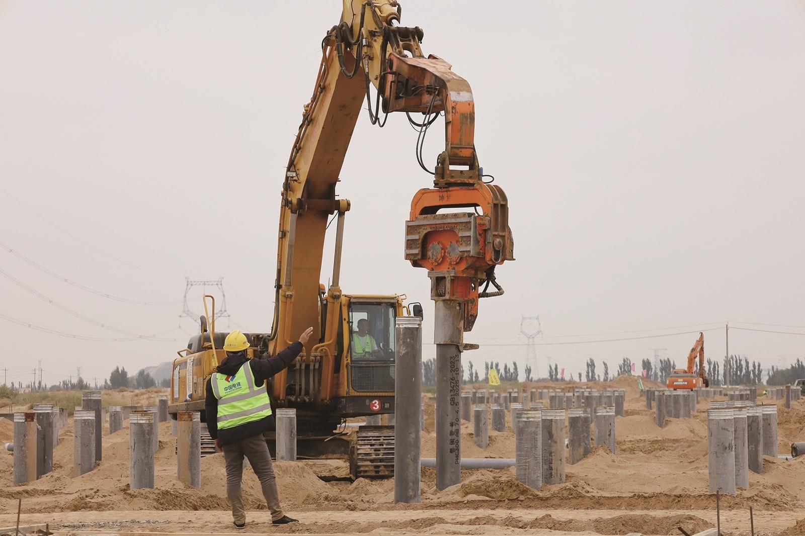 磴口县100万千瓦/400万千瓦时电源侧独立储能项目两个子项目建设工地虽只有一路之隔,但施工企业互相比质量、比速度,确保各自项目在年底建设完工。