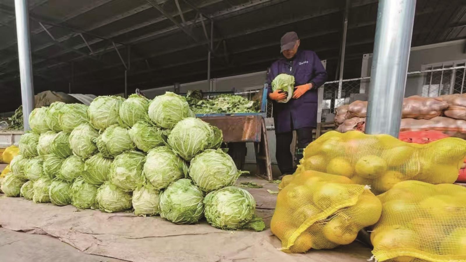 不远处,白菜摊位前更是人头攒动,一颗颗饱满结实的白菜被精心挑选、装车,市民王玉莲和老伴一早就骑着三轮车来到市场,在反复比对后,终于选定了心仪的白菜。