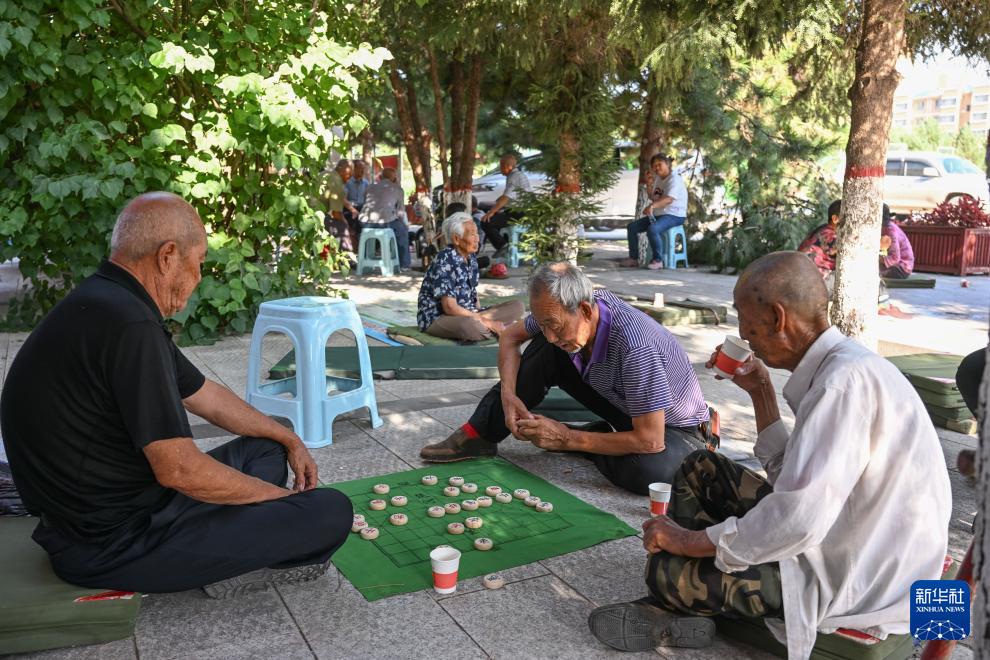 8月1日,群众在内蒙古呼和浩特市土默特左旗一处临时安置点下象棋。