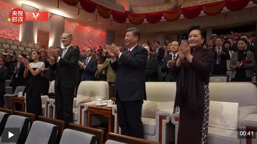 11月12日晚,国家主席习近平和夫人彭丽媛在北京国家大剧院同西班牙国王费利佩六世夫妇一同观看西班牙皇家剧院音乐会。