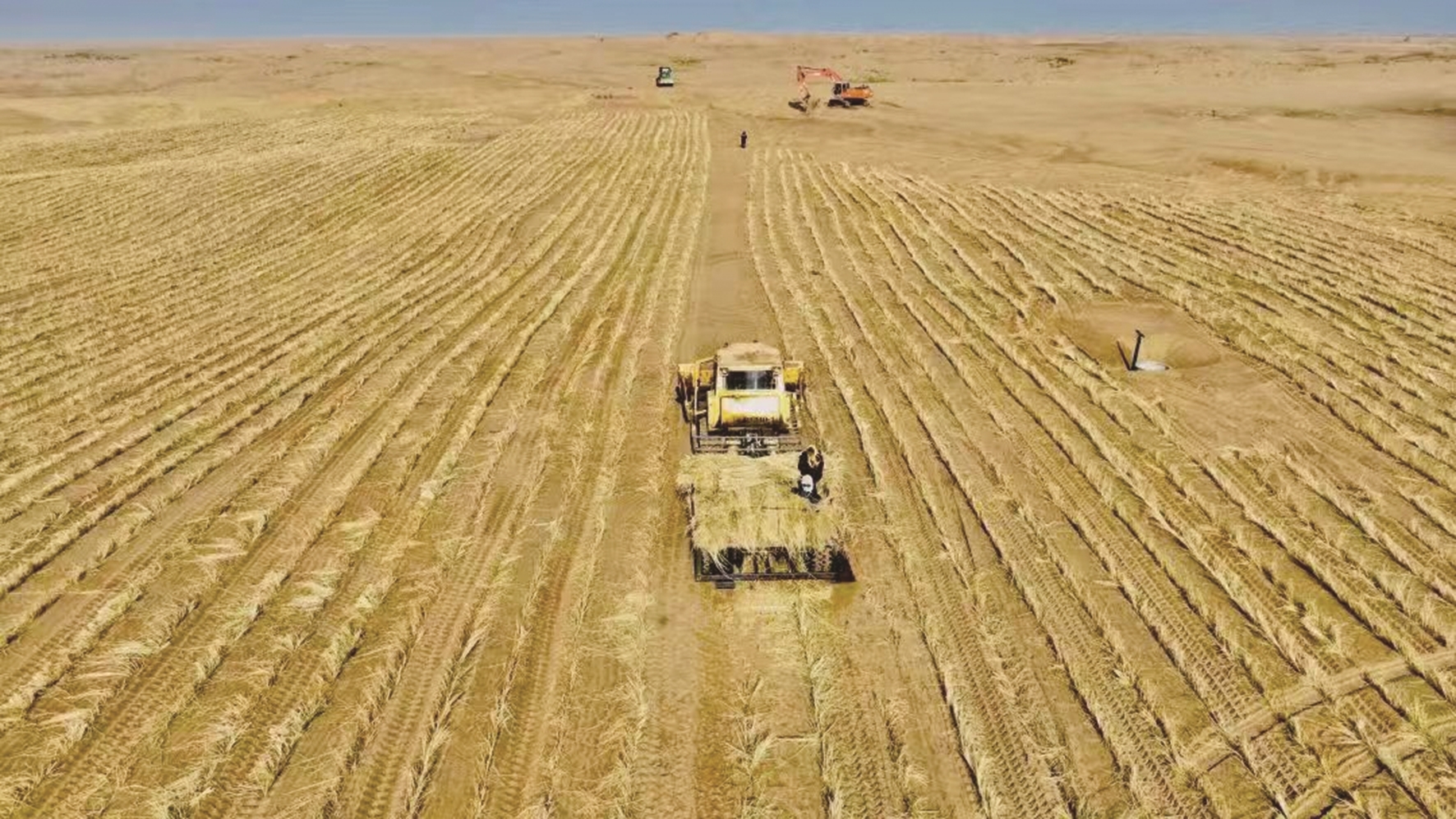“十四五”期间,磴口县创新“光伏+生态治理”模式,在光伏板下种植梭梭、四翅滨藜等耐旱植物,发展肉苁蓉等沙产业,实现“板上发电、板下修复、林间增收”的三重效益。截至今年,全县累计完成沙漠生态治理面积216万亩,林草覆盖度从37%提升至41.4%。