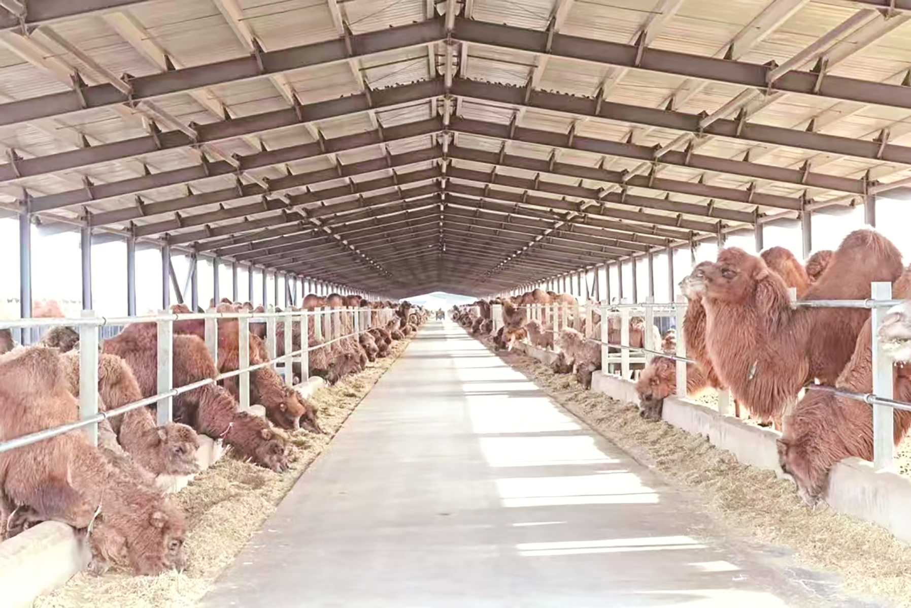 深挖戈壁红驼文化内涵和经济价值,将其确立为该旗推动乡村振兴的主导产业之一,创新推出“企业+合作社+基地+牧户”的经营方式,建立完善农企利益联结机制。全旗建设24个高标准牲畜托养所,发展现代舍饲牧业,将牧民牲畜统一饲养、统一管理,抱团创造收益。获各琦苏木牧民朝鲁门将家里的10对子母骆驼托养给养殖基地,基地免费喂养、驯化骆驼,每年每对骆驼有2400元租赁费,他自己还在养殖基地打工,月收入近6000元,一年下来收入十几万元且无需承担风险,真正实现“骆驼打工、牧民躺赚”。目前,全旗双峰驼数量稳定控制在3万余峰,户均增收2.8万余元,产业总产值已突破5亿元,成为牧民重要的经济来源。