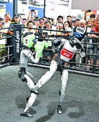 在重庆举办的2025世界智能产业博览会上,机器人进行拳击比赛。新华社发