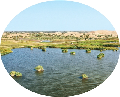 位于库布其沙漠里的七星湖景区