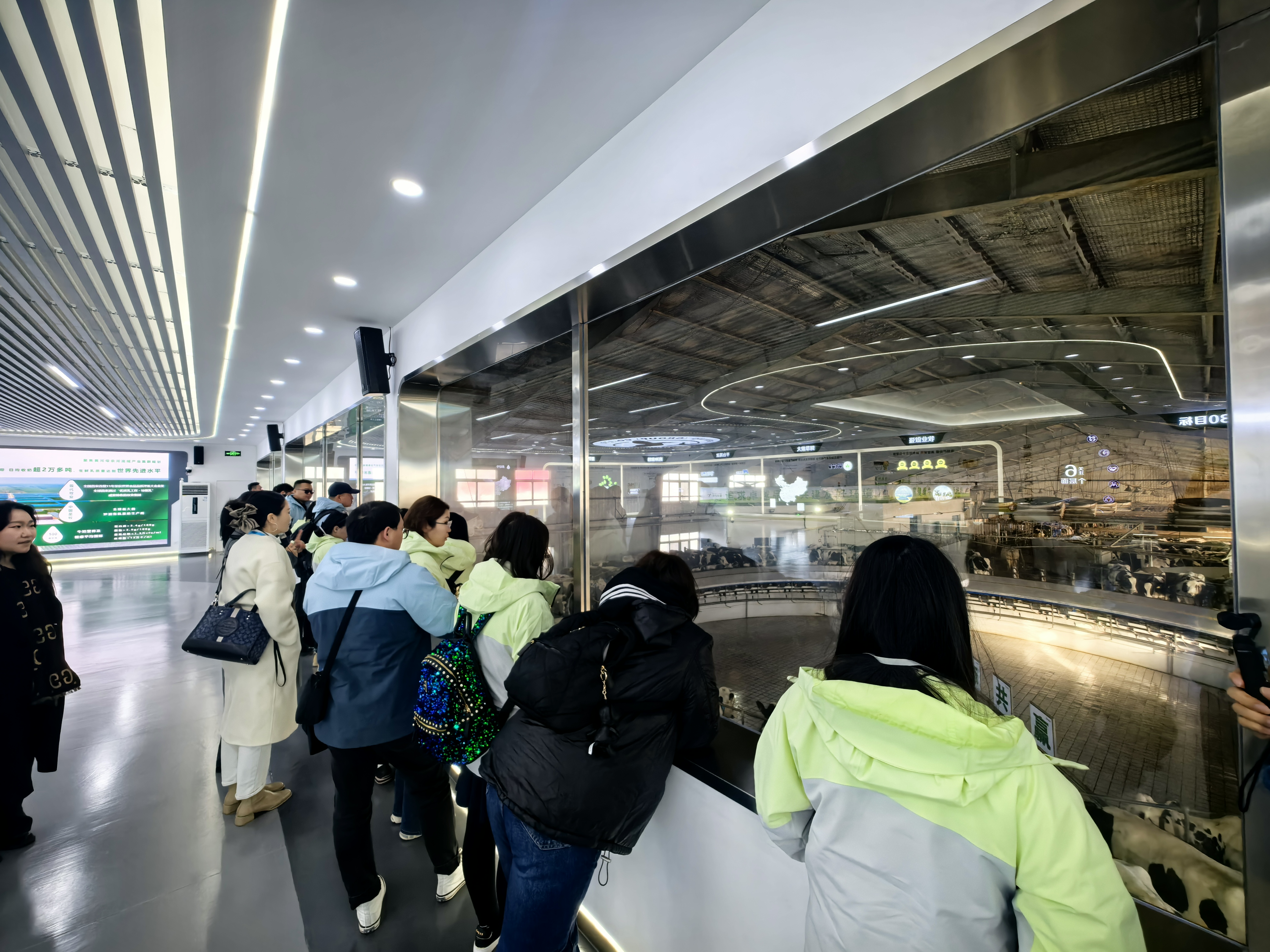 12月6日,中蒙记者在蒙牛总部基地拍摄奶牛走入自动挤奶转盘。(曹一鸣 摄)