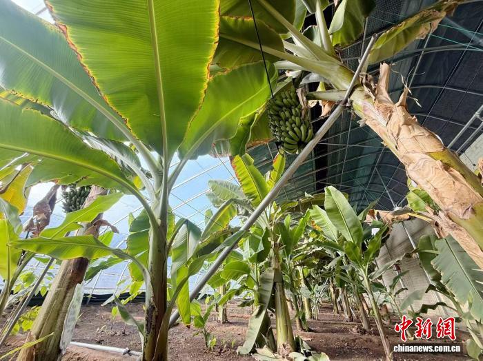 图为乌拉特后旗国际农业博览园的香蕉长势喜人。 阿拉腾苏布达 摄