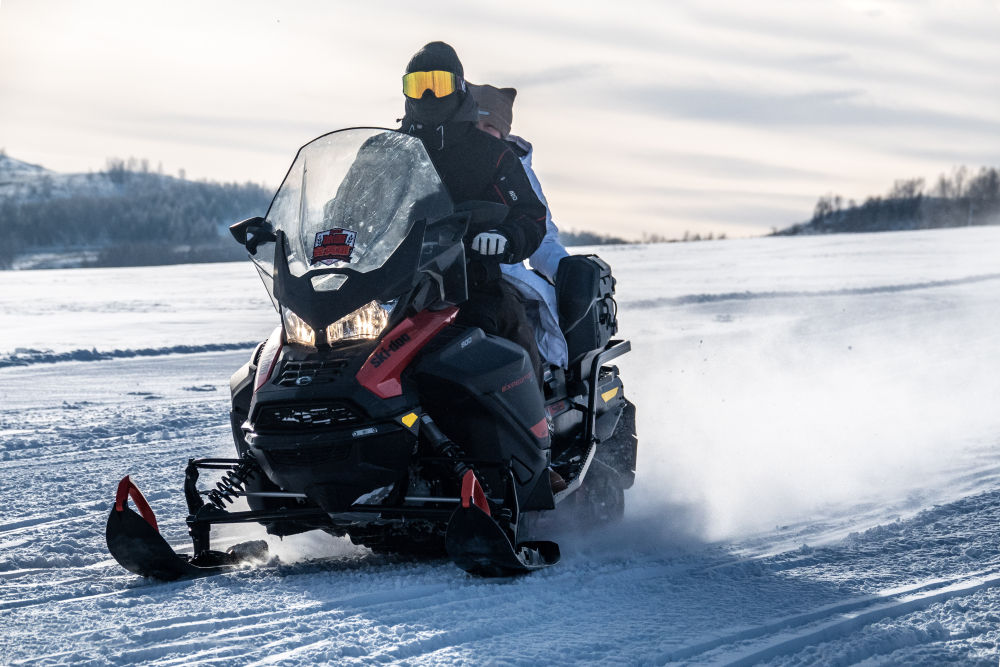 12月22日,游客在牙克石凤凰山景区驾驶雪地摩托,体验在林海雪原间穿梭的速度与激情。(吕昊俊 摄)