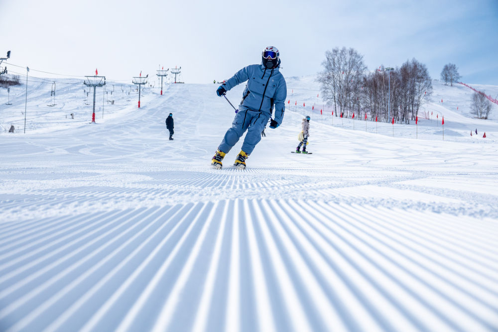 12月22日,滑雪爱好者在牙克石凤凰山滑雪场的专业雪道上飞驰。(吕昊俊 摄)