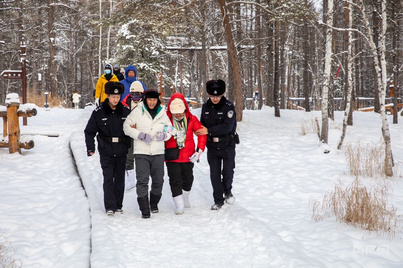 呼伦贝尔民警为游客提供帮助(央广网发 李枝远 摄)