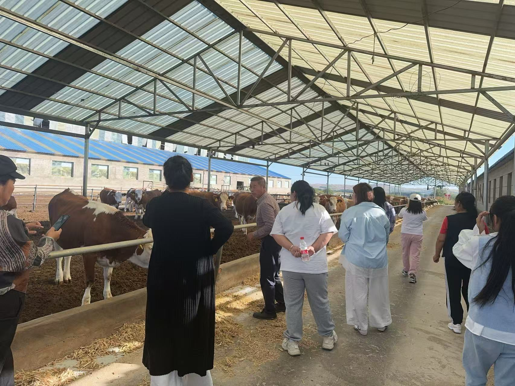 锡林郭勒职业学院师生在合作企业进行牛的健康监测、疫病防控实操