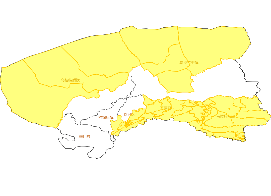 受降雪天气影响,12小时内临河区南部、五原县、乌拉特前旗、乌拉特中旗北部、乌拉特后旗北部存在对交通有影响的道路结冰或积雪。请有关单位和人员做好防范准备。