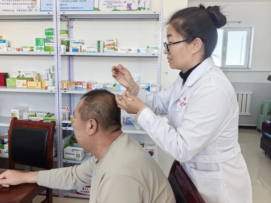 村里的徐二子大爷腿脚不便,常年卧床休养,刘瑞红便定期上门为老人测量血压、血糖,进行针灸和推拿调理。2025年秋天,她还为老人到旗残联申请了一台电动轮椅。“自从申请回轮椅,老汉可以天天出去,和人们聊一会儿,心情也好了。”徐大爷的老伴儿杨小女高兴地说。