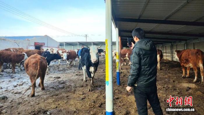 图为保险公司工作人员采集牛的信息。王志芳供图