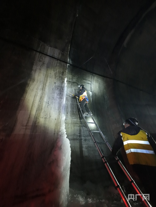 截至1月12日,国铁呼和浩特局锡林浩特综合维修段丰宁北路桥车间管辖的35座隧道中,14座出现结冰情况。为此,该车间组建了“打冰队”,每日利用180分钟的“天窗”时间开展除冰作业。