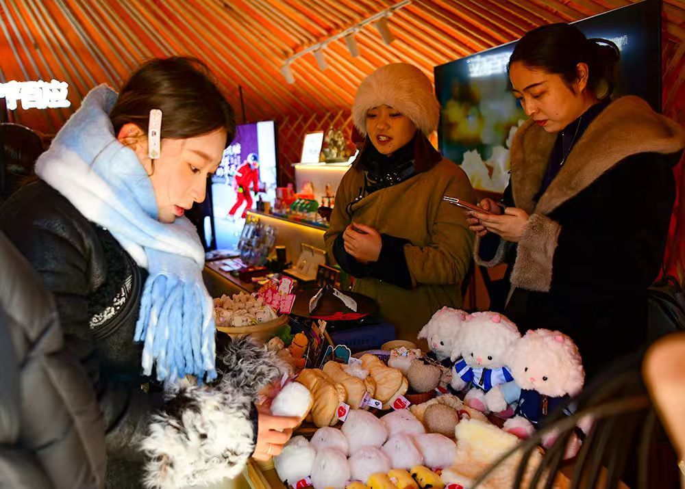 “绒绒雪世界”内有全国唯一可居住冰雪酒店,主题冰雕、非遗集市与全龄娱乐设施,共同构筑出“暖暖呼伦贝尔,绒绒雪世界”的温情童话。