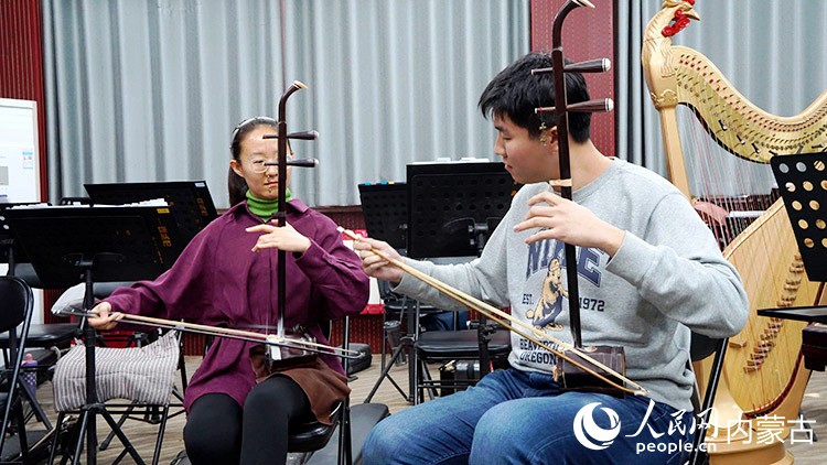 包头市艺术剧院民族乐团的二胡演奏员正在排练室演奏经典曲目《赛马》。人民网记者 张力洋摄