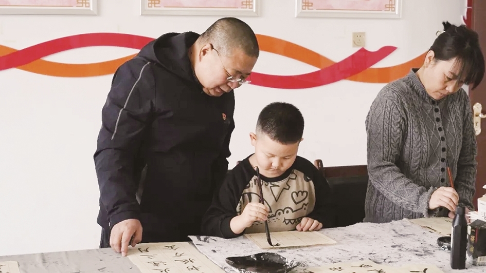 “笔要拿稳,手腕放松,掌心像虚握着一枚小鸡蛋。”在巴音宝力格镇塞上社区的书法室内,谢文生正在为社区里的孩子们讲解毛笔的执笔方法。理论讲解后,谢文生边写边讲解起笔、行笔、收笔的技巧,手腕轻转间,毛笔在宣纸上留下流畅有力的线条。这间占地40平方米的书画室里配套齐全、环境雅致,社区的书画爱好者们时常齐聚于此,或挥毫泼墨、以笔抒情,或切磋技艺、交流心得。“社区书画室让大家既能沉下心来钻研技艺,又能结识志同道合的朋友,丰富了晚年生活,获得感满满。”谢文生说。