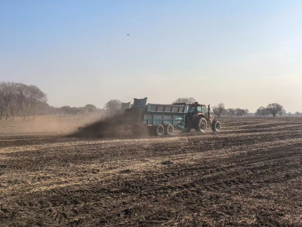 扎赉特旗农户正在向黑土耕地抛撒农家肥。(王群 摄)