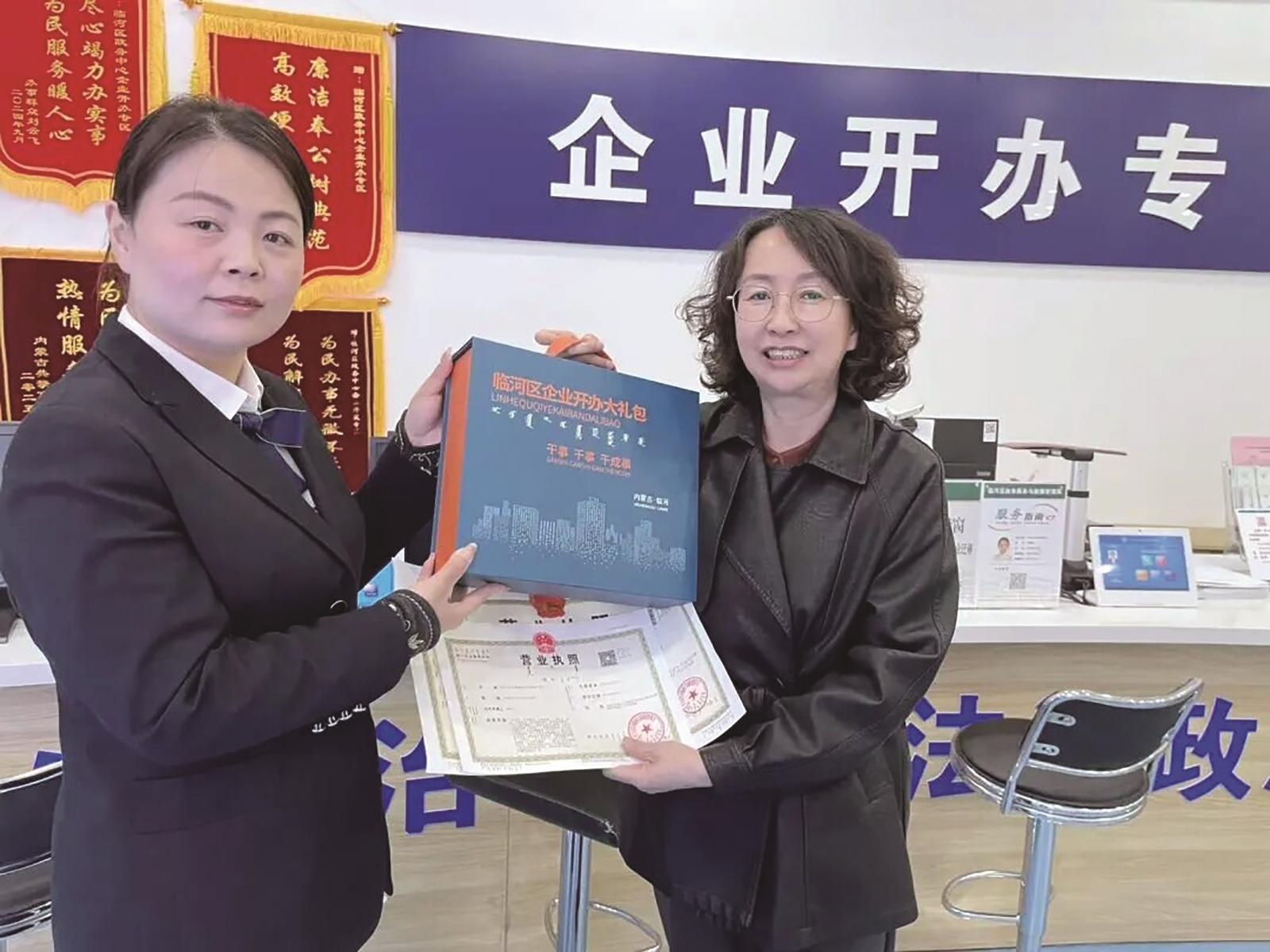 “原本以为开办企业要花不少时间和费用,没想到现在不仅办理快,还能免费领取大礼包,真是太贴心了!”近日,在临河区政务服务中心,刚完成企业登记的王女士手持崭新的营业执照与印着“筑梦临河”字样的“企业开办大礼包”感慨道。