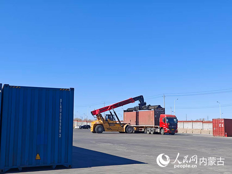 七苏木中欧班列集散中心的货物装运现场。人民网记者 刘艺琳摄