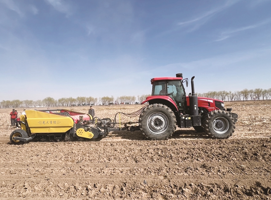 杭锦后旗长盛机械有限公司总经理李峰介绍:“2021年,公司接到盐碱地农户的诉求,希望解决土壤返盐影响收成的难题,我们的团队就扎进了实验室和试验田,潜心研究了四五年。”他伸手轻拍身旁的旋耕起垄播种机介绍道,这款设备能有效保湿保水、优化田间采光,从耕作环节助力降低土壤盐分,2025年在磴口县沙金套海苏木的盐碱地试种后,向日葵亩产从以往的150~160斤直接提升至450斤,增产效果显著。“目前公司已量产300台该设备,正在全市大面积推广,今年能让更多盐碱地农户增收。”李峰笑着补充道。